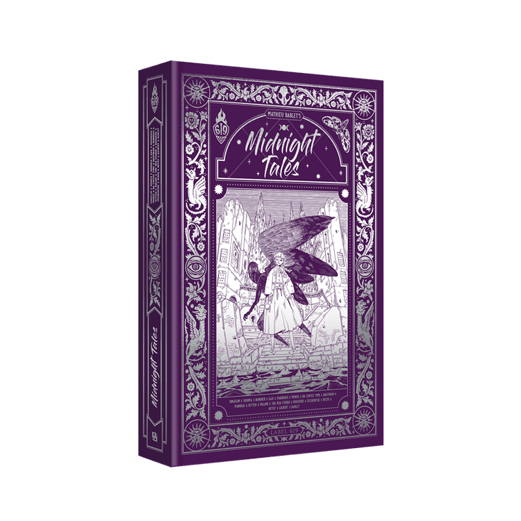 Réunis dans cette intégrale, les contes de minuit se voient offrir un magnifique écrin cartonné à l’effet velouté, avec marquage à chaud, signet et reliure en tranchefile faisant écho à l’édition de The Midnight Order parue en 2022. La couverture enluminée aux reflets argentés sur fond violet évoque une certaine idée de la magie et des grimoires occultes interdits. Quant à l’illustration de couverture, signée Mathieu Bablet, elle ne laisse aucune place au doute : les midnight girls sont bien de retour !